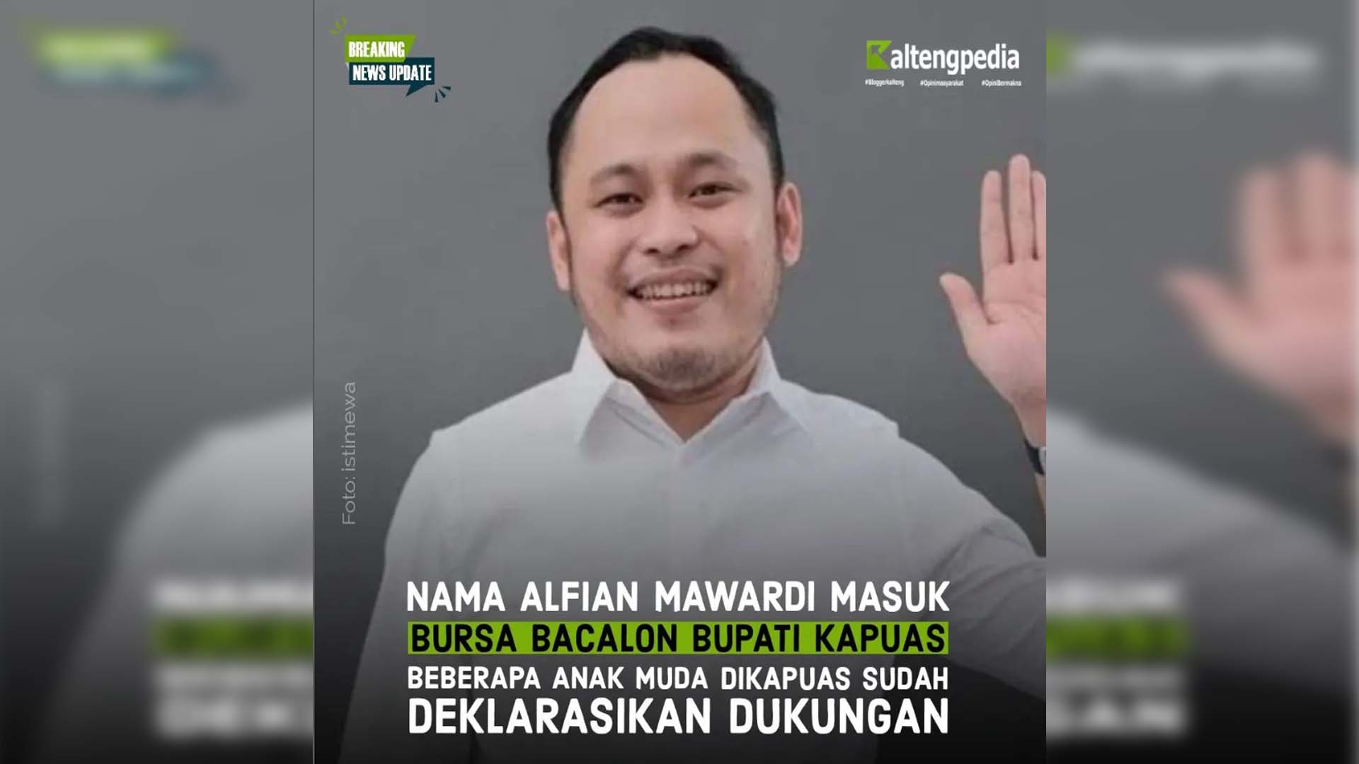 Informasi terkini yang kami dapatkan, beberapa anak muda di Kapuas mulai menggaungkan namanya untuk maju di Pilkada Kapuas 2024, disisi lain ada kader PDIP yang senior di Kapuas yaitu Wiyatno yang beberapa waktu lalu menyatakan siap maju di Pilbup Kapuas. Akankah duet Wiyato dan Alfian Mawardi di Kapuas terjadi? Mengingat bahwa kedua kader PDIP memperoleh suara yang luar biasa pada Pileg 14 Februari 2024 kemarin.