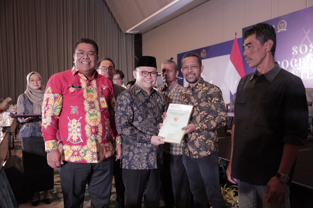 “Jadi sertifikat ini merupakan sebuah bukti hak Bapak/Ibu. Jadi tidak ada lagi orang dari negara mana pun yang bisa mengambil tanah Bapak/Ibu sekalian,” tuturnya.